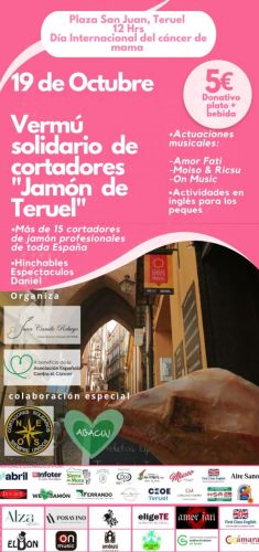La campaña “eligeTE. Alimentos de Teruel” impulsada por Diputación Provincial de Teruel y Coordinada por Cámara Teruel, colabora con el Vermú solidario de cortadores “Jamón de Teruel” en beneficio de la AECC, donde se degustará Jamón de Teruel al corte y por un precio simbólico. El acto se celebrará el próximo 19 de Octubre a partir de las 12h y los beneficios recaudados se destinarán a la lucha contra el cáncer.