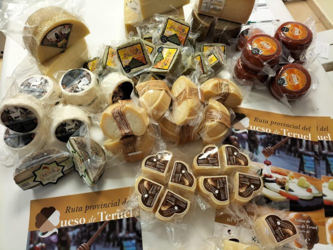 Con todos los quesos presentados, la organización ha establecido dos lotes distintos compuestos por quesos variados desde más tiernos a semicurados y curados, ahumados, con romero, de leche cruda o pasteurizados, la mayoría de oveja, pero también alguna variedad de cabra. Y entre ellos no faltan el Queso marca Teruel de forma lobulada y perfecto para elaborar una bonita tabla de quesos. En total se han repartido 560 kilos de queso de Teruel para la ruta.