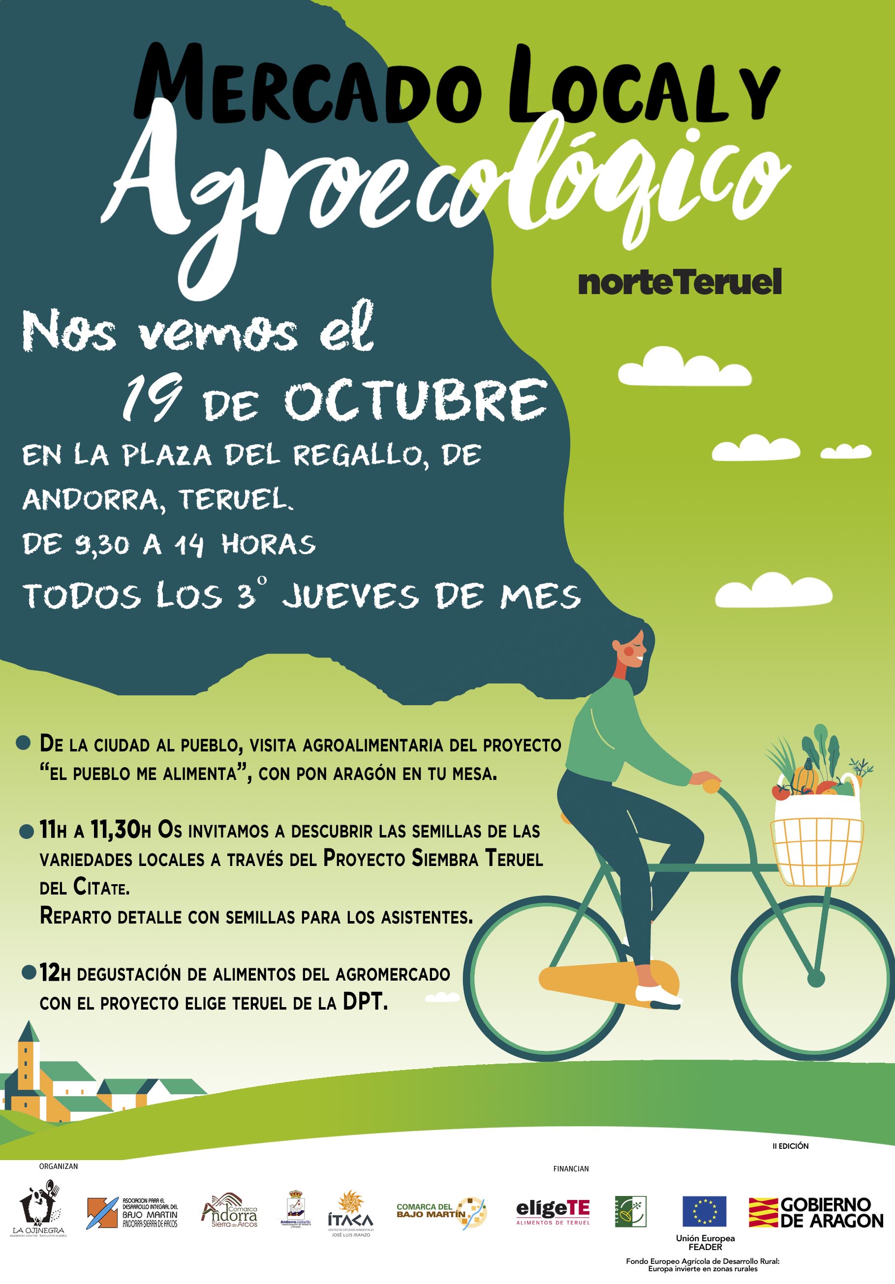 Como sabréis todos los 3º jueves de mes realizamos el AgroMercado en la plaza del Regallo, en Andorra, en esta ocasión acogeremos una AgroVisita del proyecto Pon Aragón en Tu Mesa, de los grupos de acción local, 𝗗𝗲 𝗹𝗮 𝗰𝗶𝘂𝗱𝗮𝗱 𝗮𝗹 𝗣𝘂𝗲𝗯𝗹𝗼.